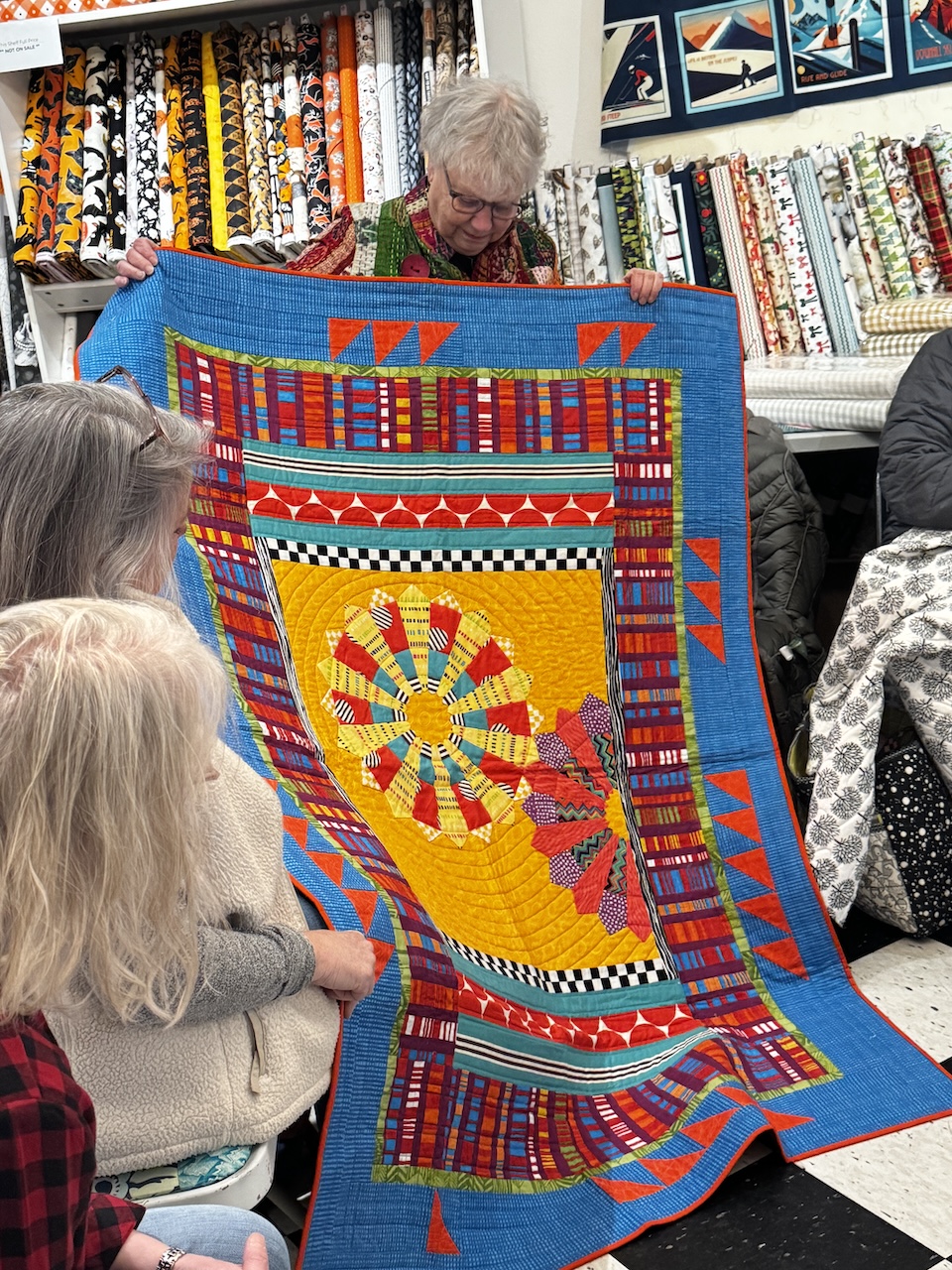 More than a quilt and yarn shop… It feels like being invited into Judy’s home. If you are wondering if stopping by should be on your list… Yes! Beautiful fabric, wonderfully kind and talented staff and a bathtub full of yarn! Treat yourself and drop on in.